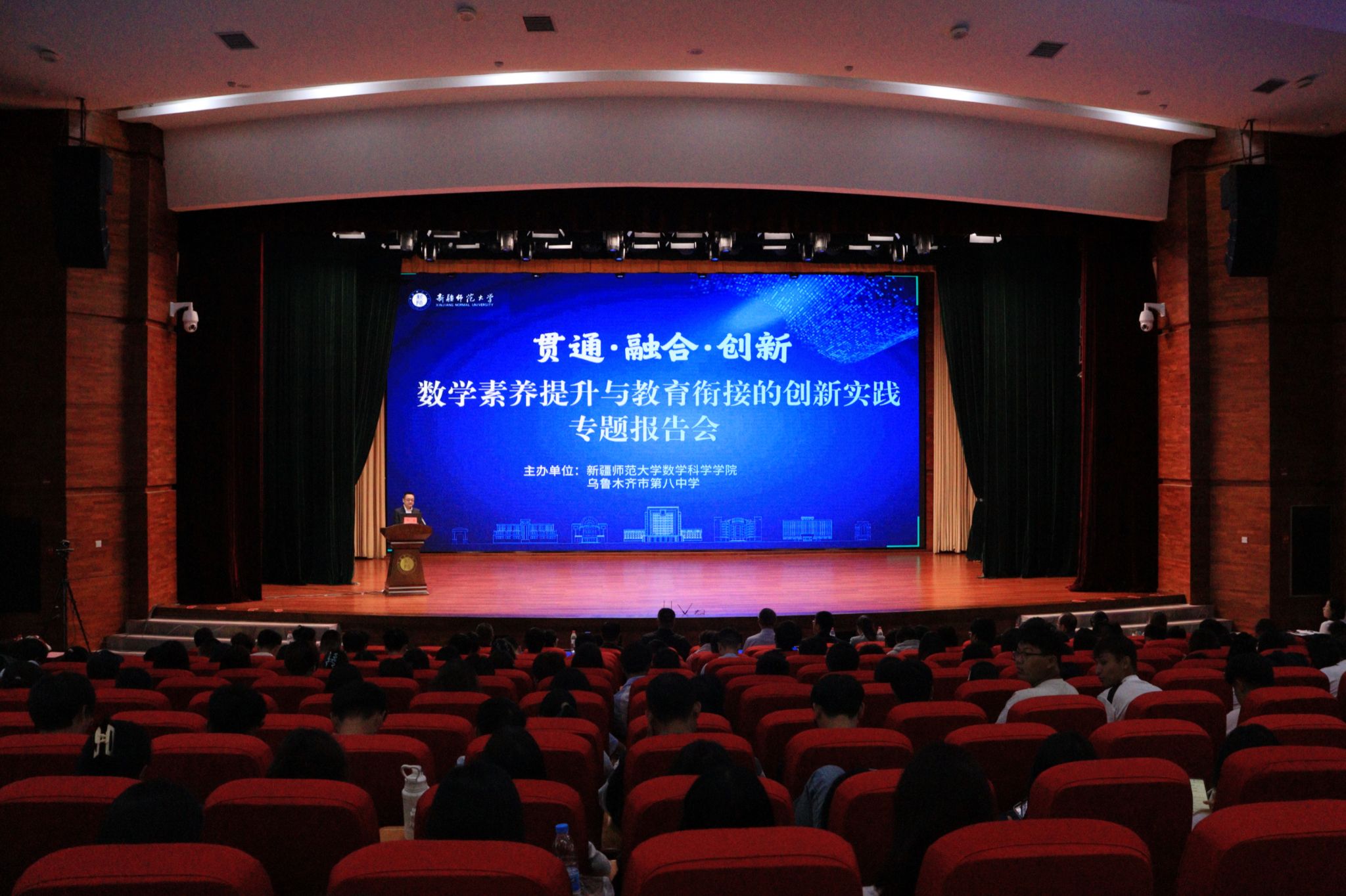 与乌鲁木齐市第八中学联合主办的“贯通·融合·创新:数学素养提升与教育衔接的创新实践”专题报告会在温泉校区昆仑讲堂开幕。来自乌鲁木齐市头部中小学幼儿园领导、数学骨干教师代表、各地州数学国培区培学员、919直播