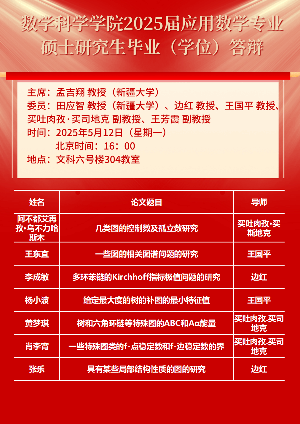 919直播 2025届计算数学、应用数学专业硕士研究生毕业(学位)答辩