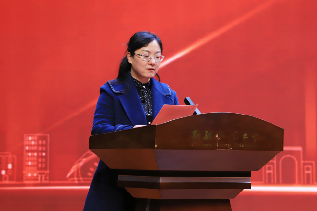 党委书记杨晓蓉宣读表彰文件,对获得表彰的同学们表示热烈祝贺,在对支教中表现突出的“优秀实习支教学生”和“教学技能竞赛”获奖学生给予高度评价并表示,希望同学们不断磨练本领,提升自我,为日后成为合格教师打下坚实基础。