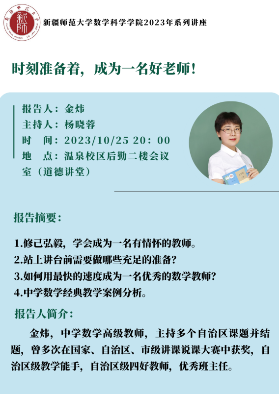 党委书记主持,特邀请乌鲁木齐十三中学数学高级教师金炜老师主讲,919直播