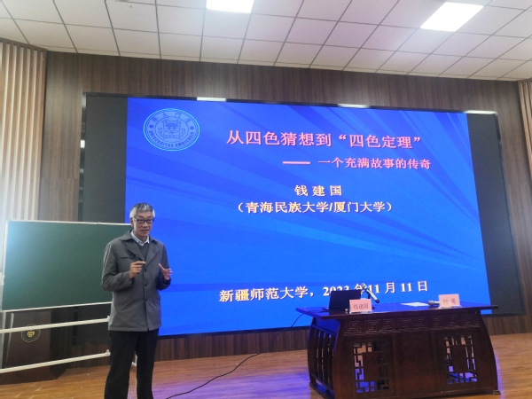 为推动学风建设,促进高阶思维,提升人才培养质量, 11月11日上午,919直播 特邀青海民族大学校长助理、厦门大学博士生导师钱建国教授作题为《从四色猜想到“四色定理”——一个充满故事的传奇》专题报告。报告由919直播 院长何勇教授主持。919直播 教师代表、23级培优班学生、部分本科生研究生参加。